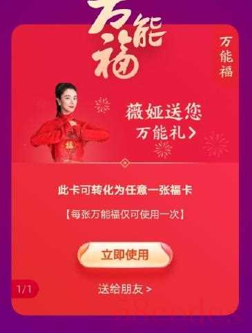 薇娅送的万能福通常是在特定的活动期间通过薇娅的直播间或者薇娅与支付宝合作的活动页面获得的。以下是获取2021支付宝敬业福万能福福卡的详细步骤: