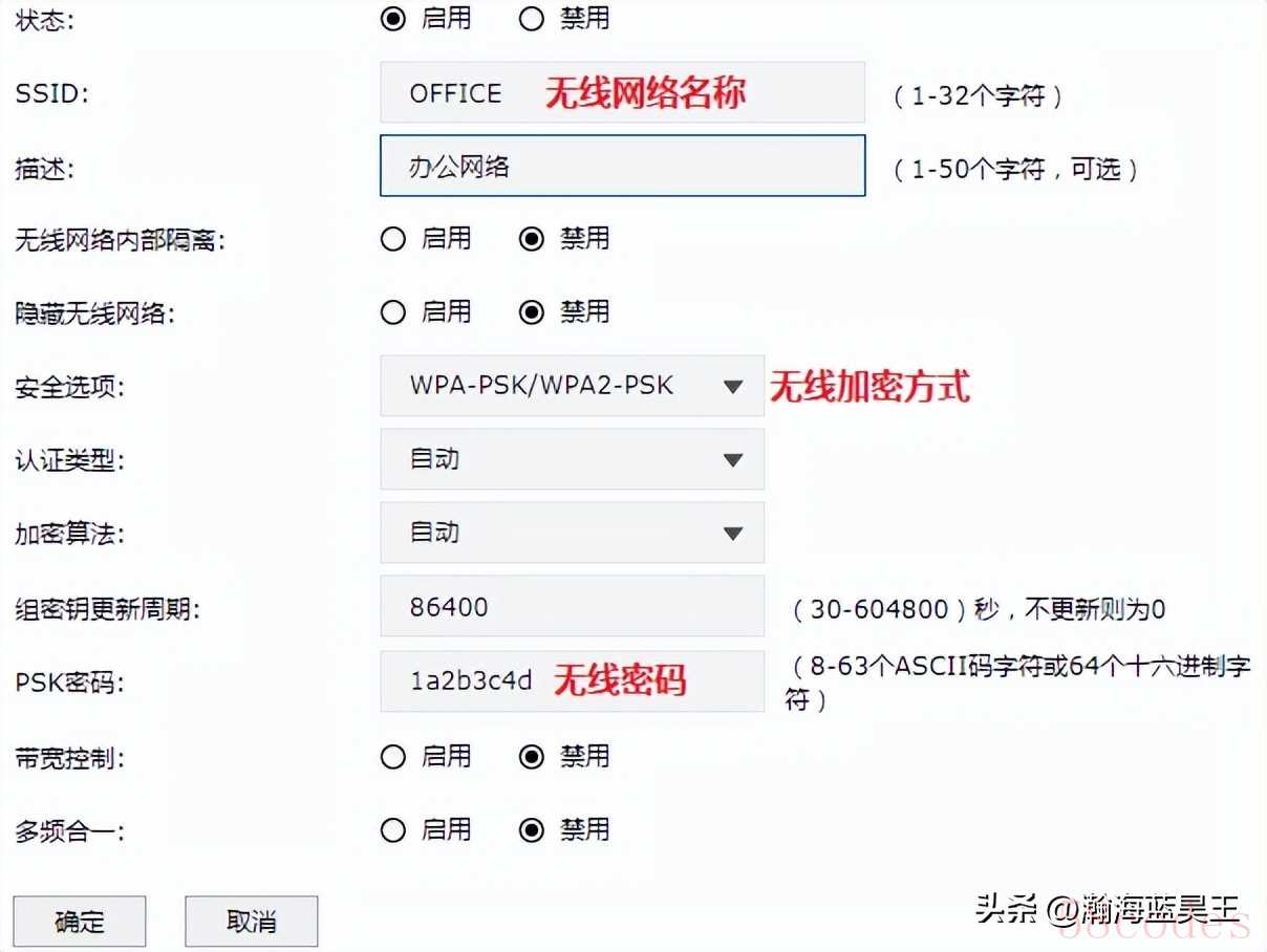 5. 修改AP无线参数终端设备不支持AP设置的无线加密方式,或者无线信号名称包含中文或特殊字符,可能会导致终端无线连接不上。建议修改AP的无线名称,建议使用英文字母或数字,取消无线加密,再使用终端无线连接。设置方法:登录AC控制器或者开启AP管理功能的路由器管理界面后,修改无线参数,如下图: