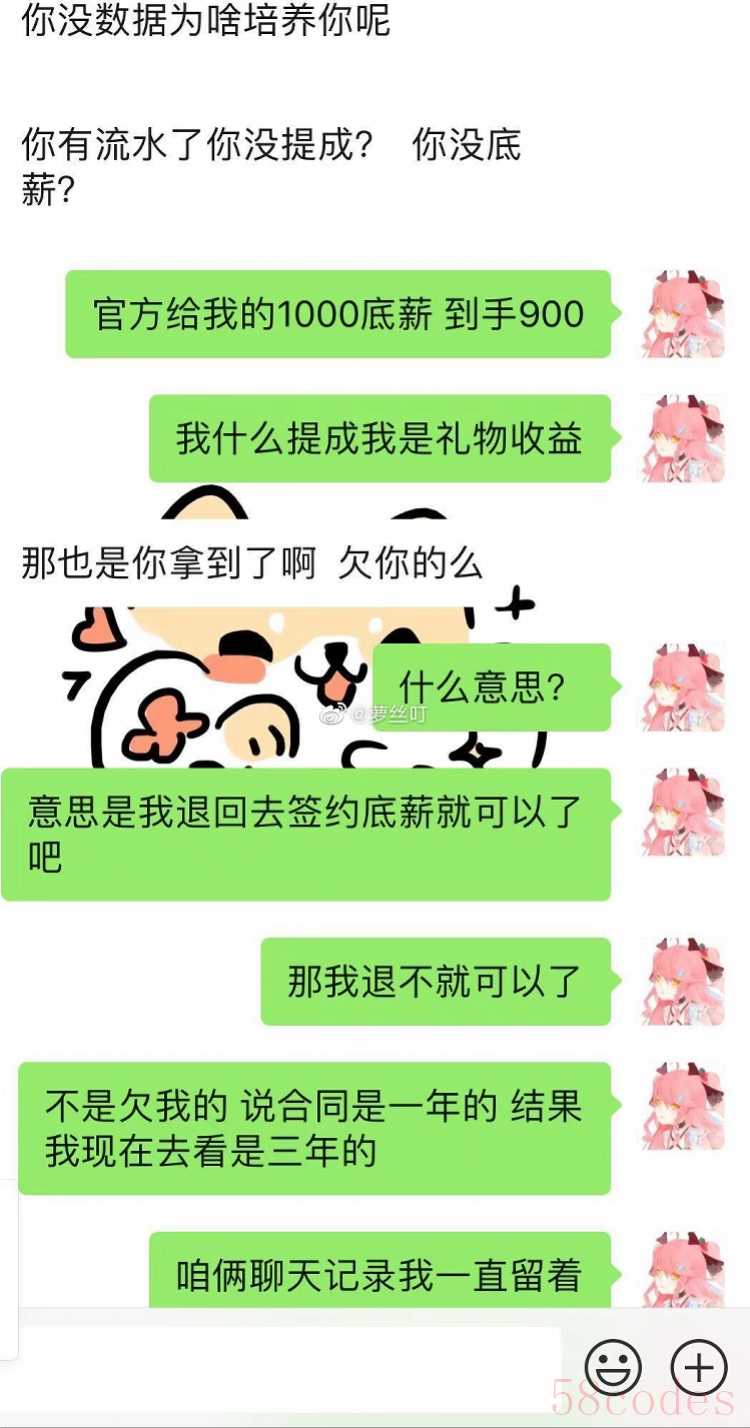 主播萝丝叮在微博上公布的聊天记录。