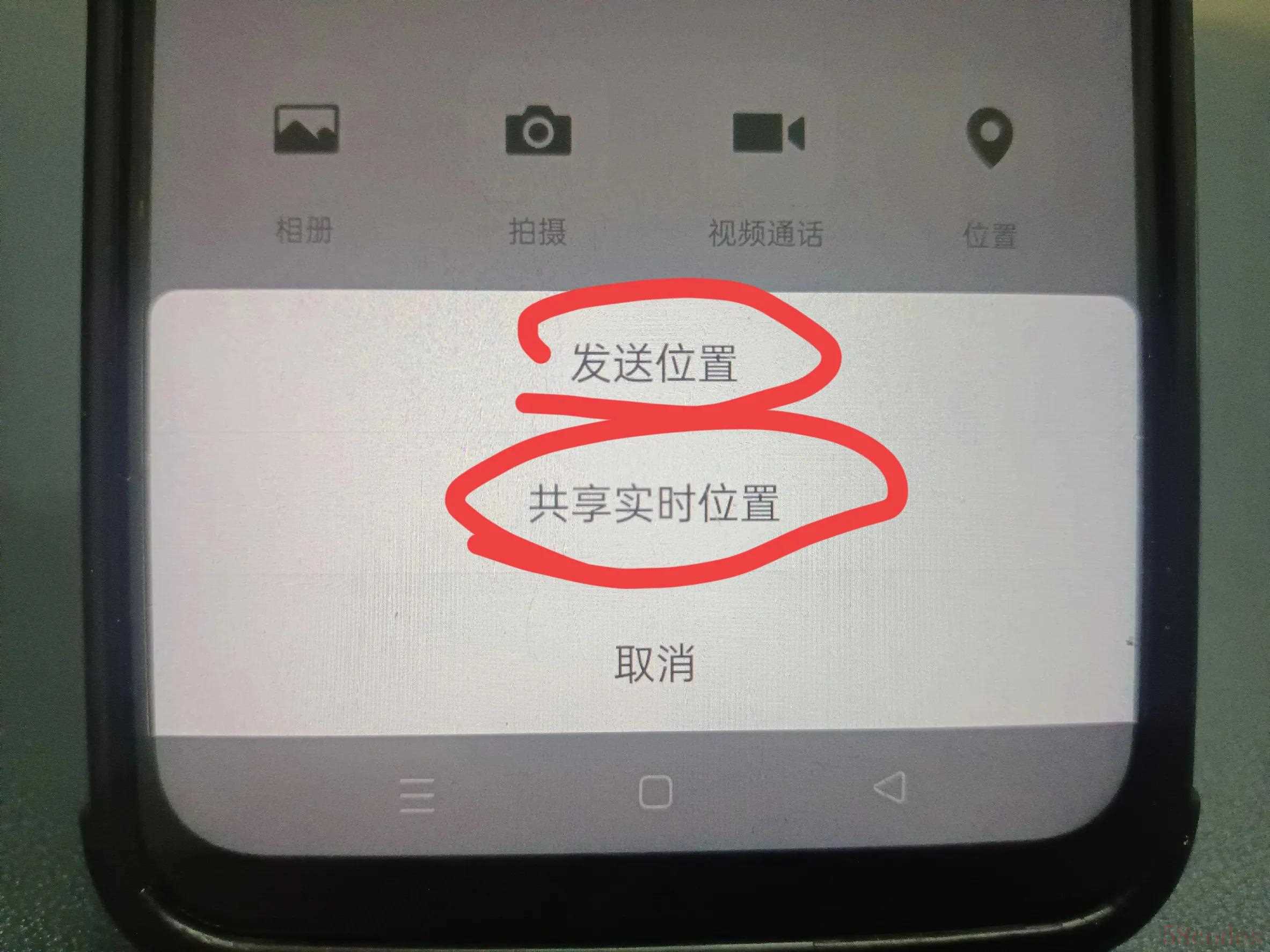 此时会出现两个选项,它们的功能区别较大,请务必正确使用,如果您想找的好友距离较远,可以直接点击“发送位置”,(如上图所示)