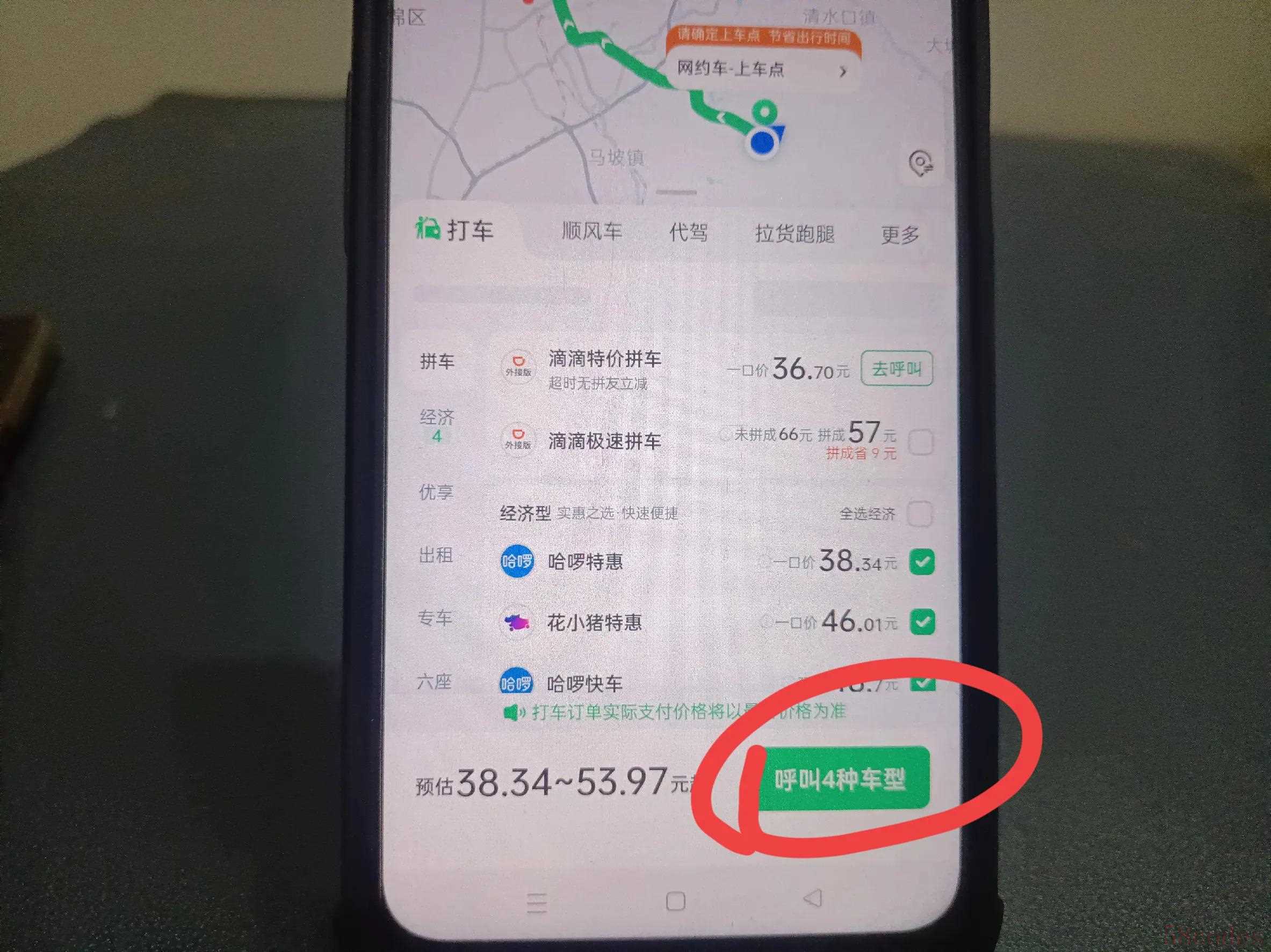 系统同样会自动填写上车点和目的地,只需选择车型并点击“呼叫”即可完成操作。(如上图所示)