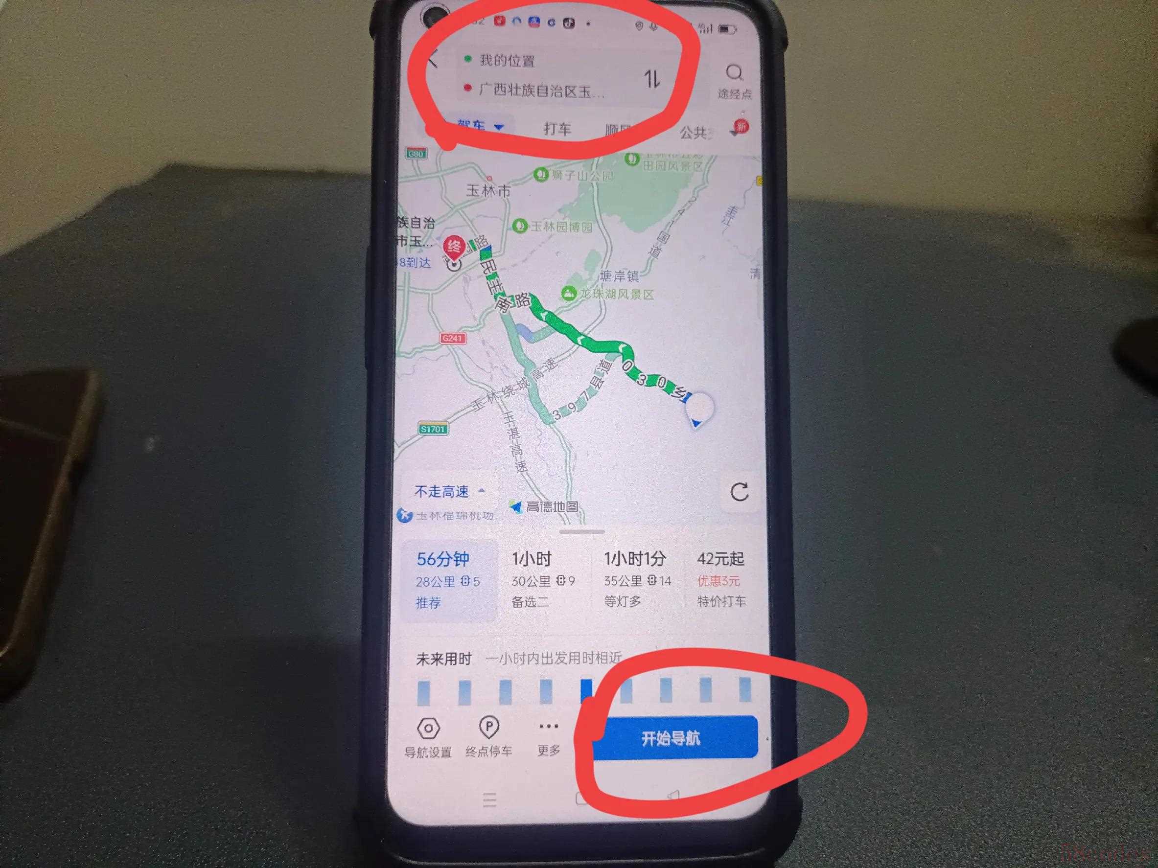 系统会自动填写起点和终点,点击“开始导航”即可出发。(如上图所示)