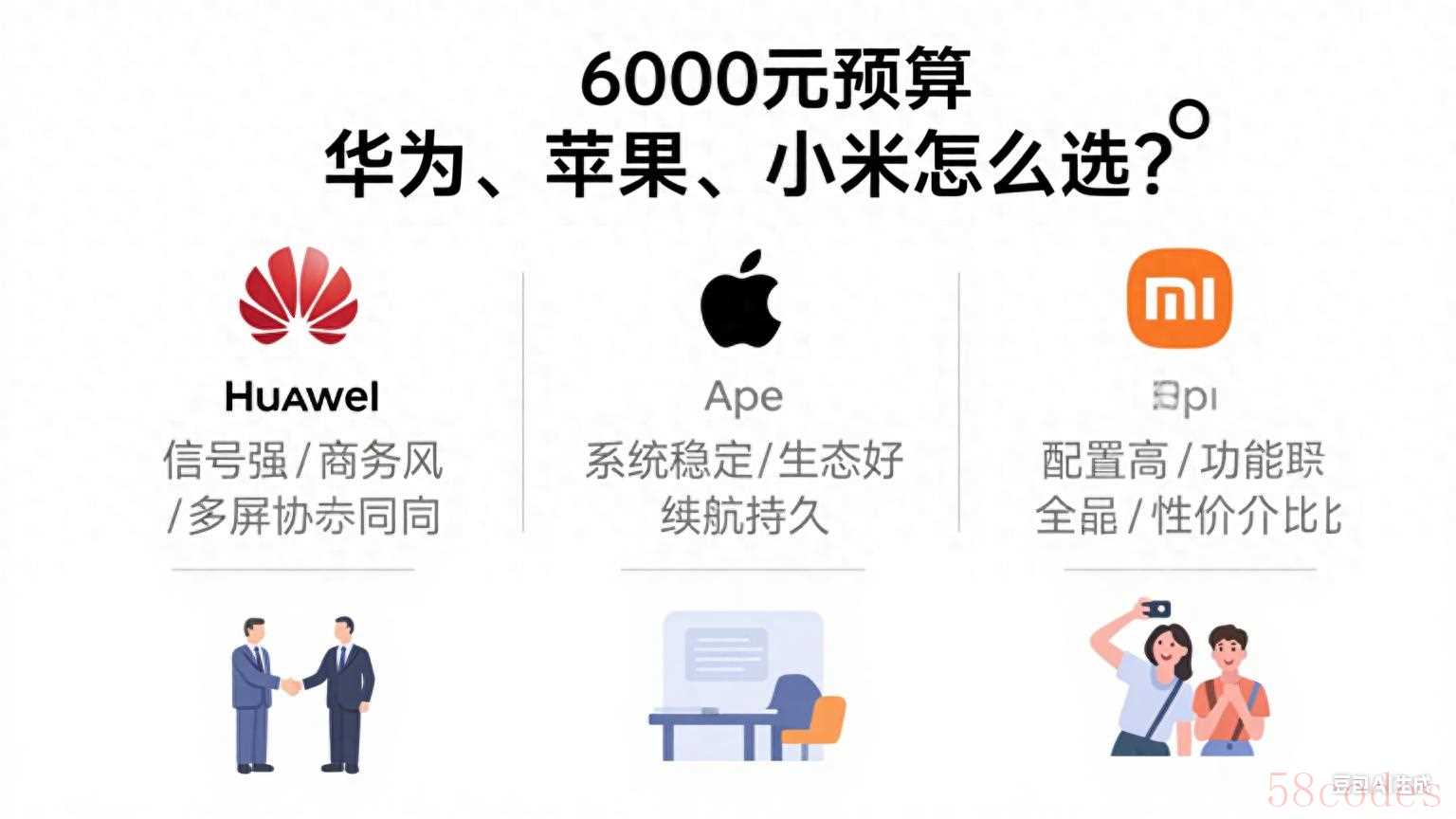6000元的预算在华为、苹果、小米三大品牌中都有不少不错的选择,选择哪个更合适,主要取决于你的"具体需求、使用习惯和优先考虑的因素"。