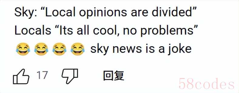 “天空新闻说“当地意见分歧”,当地人说“挺好啊,没啥问题”。 天空新闻真是个笑话。”