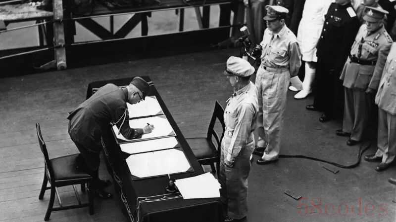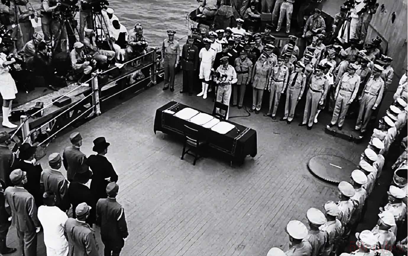 那天,在美方主导下,日本代表在东京湾“密苏里号”战舰上,正式在投降书上签字,中、美、英、苏等盟国代表依次签字确认。