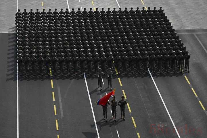 从早上9点开始,整个仪式持续了70分钟,一共包含45个方(梯)队。