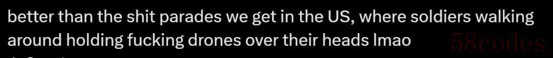 “比我们在美国看到的那些烂游行好多了...当时士兵们就手里拿个无人机走来走去的。”