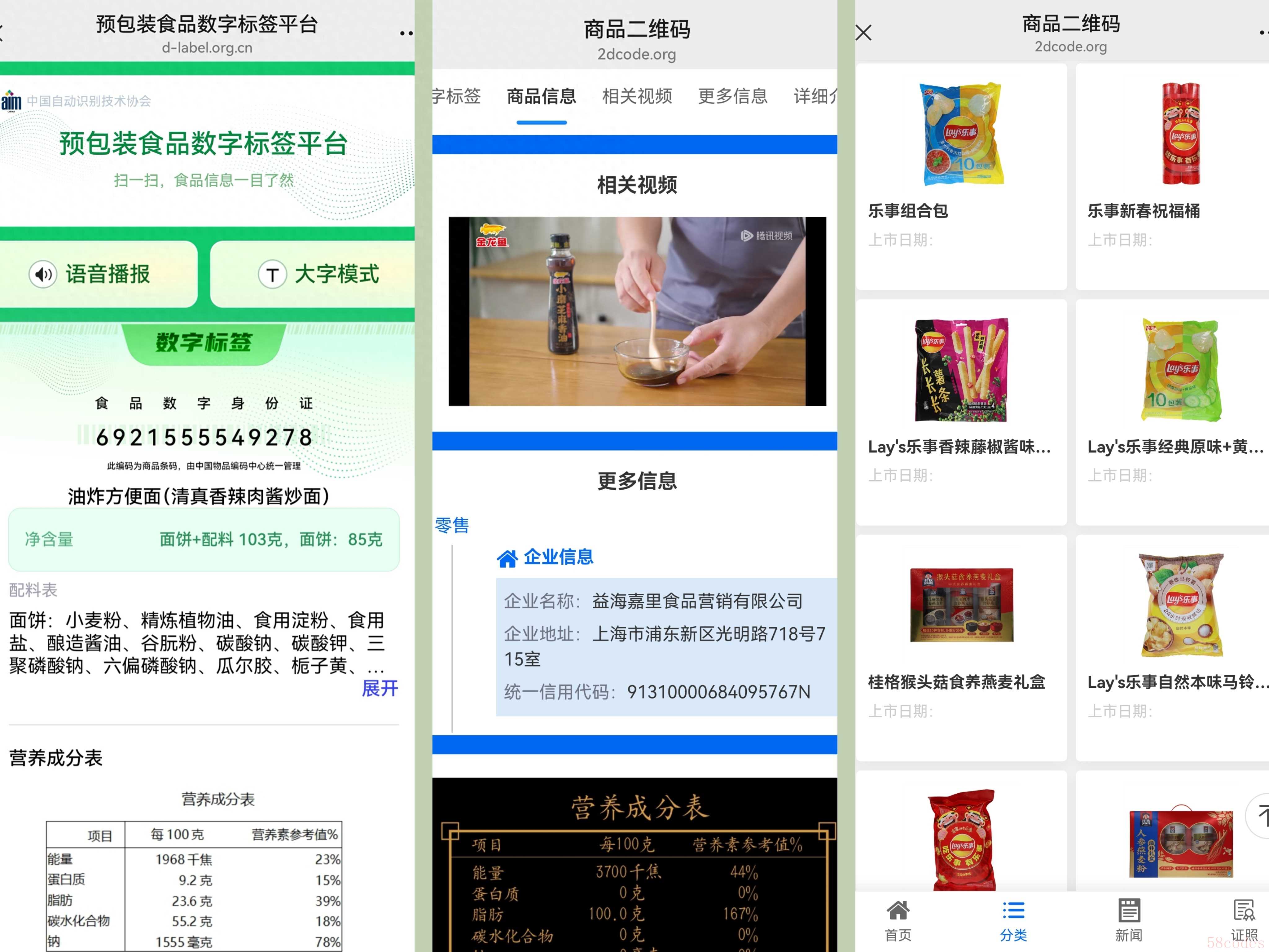 结合2025年3月发布的《食品安全国家标准 预包装食品标签通则》(GB 7718-2025)可知,数字标签是指食品包装上采用二维码等信息化手段展示的食品标签。消费者扫描数字标签二维码后,可通过手机等移动设备了解食品标签信息。同时,借助数字标签的页面缩放、语音识读、视频讲解等功能,实现食品标签信息“可听、可播、可放大”,有效解决标签信息“找不到、看不清、读不懂”的问题。