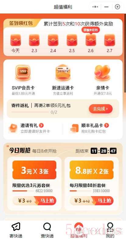 顺丰速运+小程序—超值福利,还是有不少活动的京东快递这边,京东Plus会员起步每个月一张三块钱的优惠券,这就是吸引我的主要原因了。此外和顺丰一样,在微信小程序“京东快递”,也有各种活动页面,没有Plus会员也能优惠一些。总体我感觉,京东的价格平均是要比顺丰便宜一点点的。