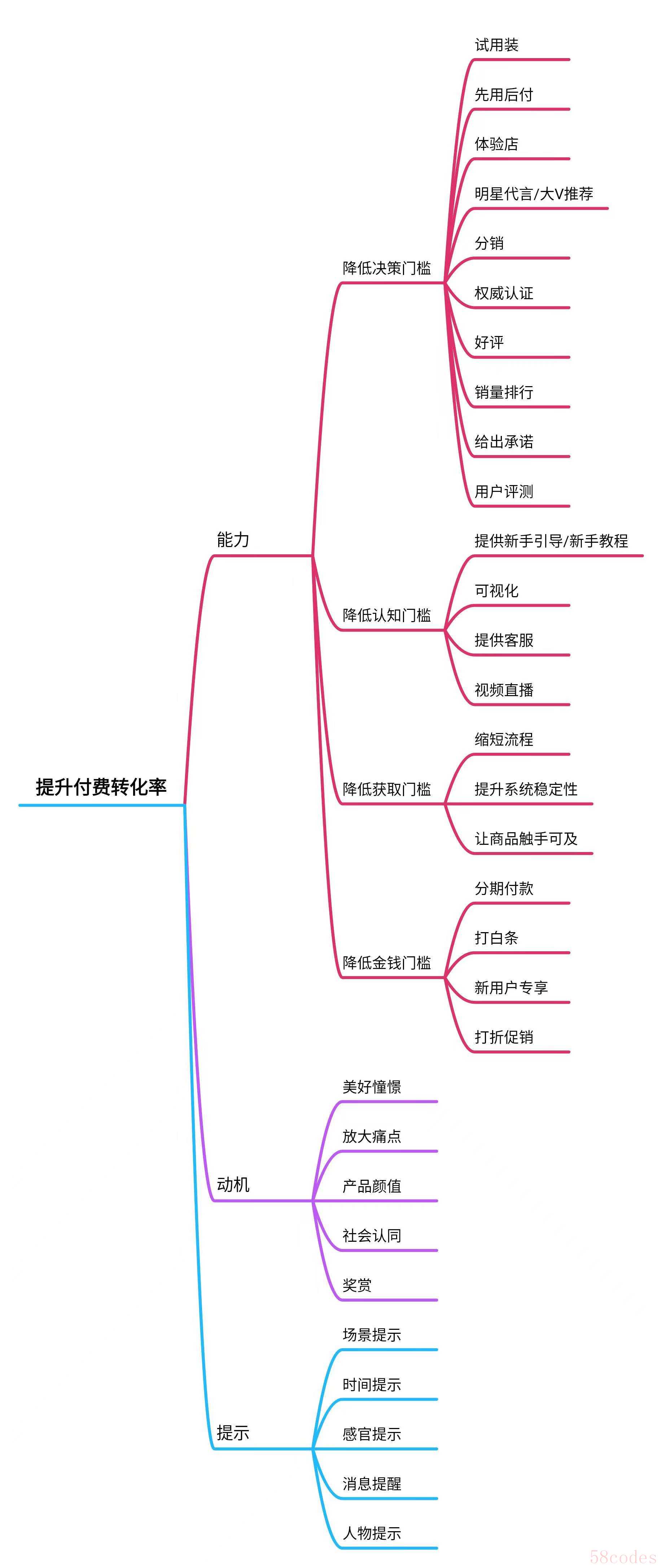 于是你就可以在「动机」、「能力」和「提示」3个要素上下功夫,得到多种多样提升付费转化率的方法: