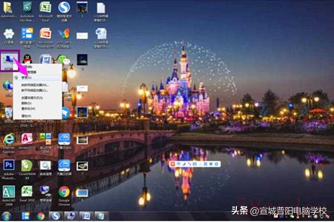 2. "右键点击你想分区的硬盘" (通常是C盘或新加的硬盘),选“管理”。(选“磁盘管理”)
