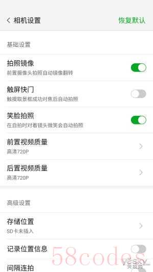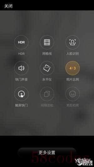 在设置界面,有常用的HDR、网格线、人脸识别、快门声音、水平仪、照片比例等设置。照片比例可以设置16:9/4:3/1:1三种,相对于iPhone缺失现在的主流比例16:9,这种设置更加合理。用户还可以进入“更多设置”进行详细参数设置。