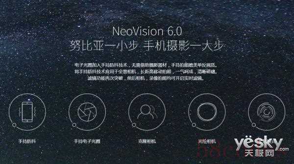 在软件方面,努比亚一直使用的是自家广受好评的NeoVersion拍照引擎,努比亚老用户对它印象最深的恐怕莫过于超级丰富的拍照玩法比如电子光圈、拍星星等等。在nubia Z11上使用的是最新的NeoVersion 6.0版本,比nubia Z11 mini/Max的版本还要新,玩法上也更为丰富,除了nubia Z11 mini/Max已经有的克隆相机、慢门、运动轨迹、DNG格式等等,nubia Z11还支持全景手持防抖、实时特效滤镜、更全相机家族等等,拍照玩法超过单反相机。