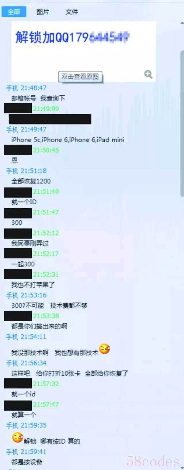 “我也很倒霉的,两台iphone6、一个iPhone5C、一个iPad2,总共4个机子被黑了,对方都知道,说解锁一口价1200元。还说如果你想骂人,态度恶劣的话,直接拉黑你。所以我当时态度很好,几乎求着它。最后600元成交了。