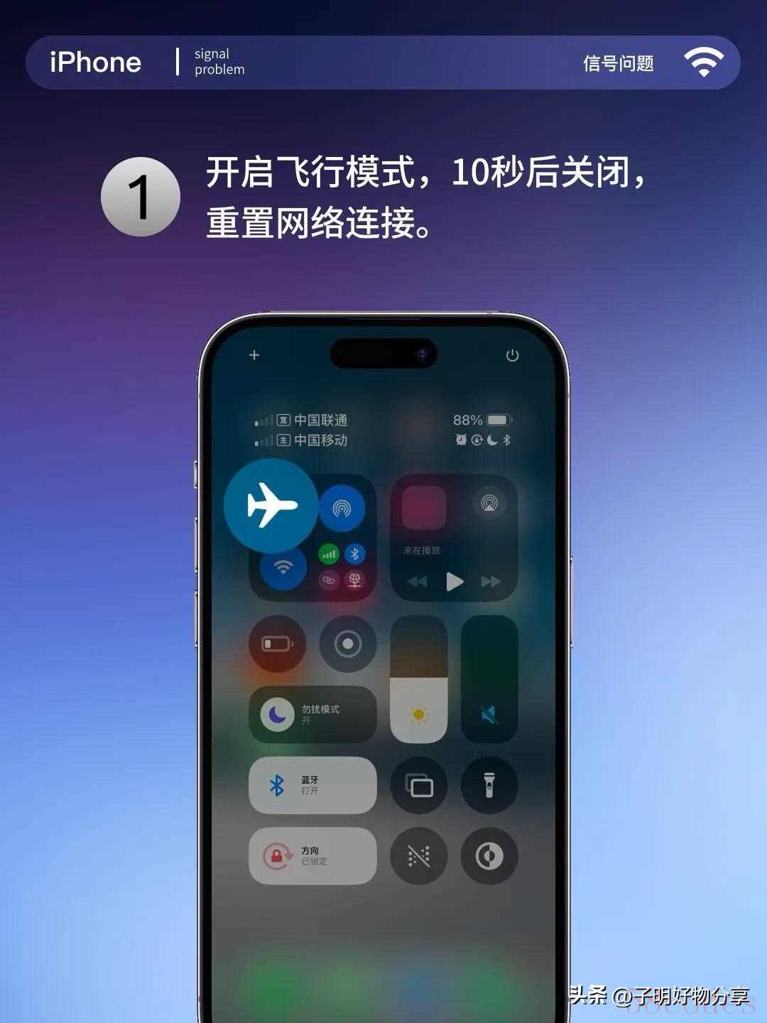 "原理:" 这会强制 iPhone 重新搜索并连接网络,有时能解决临时的连接问题。