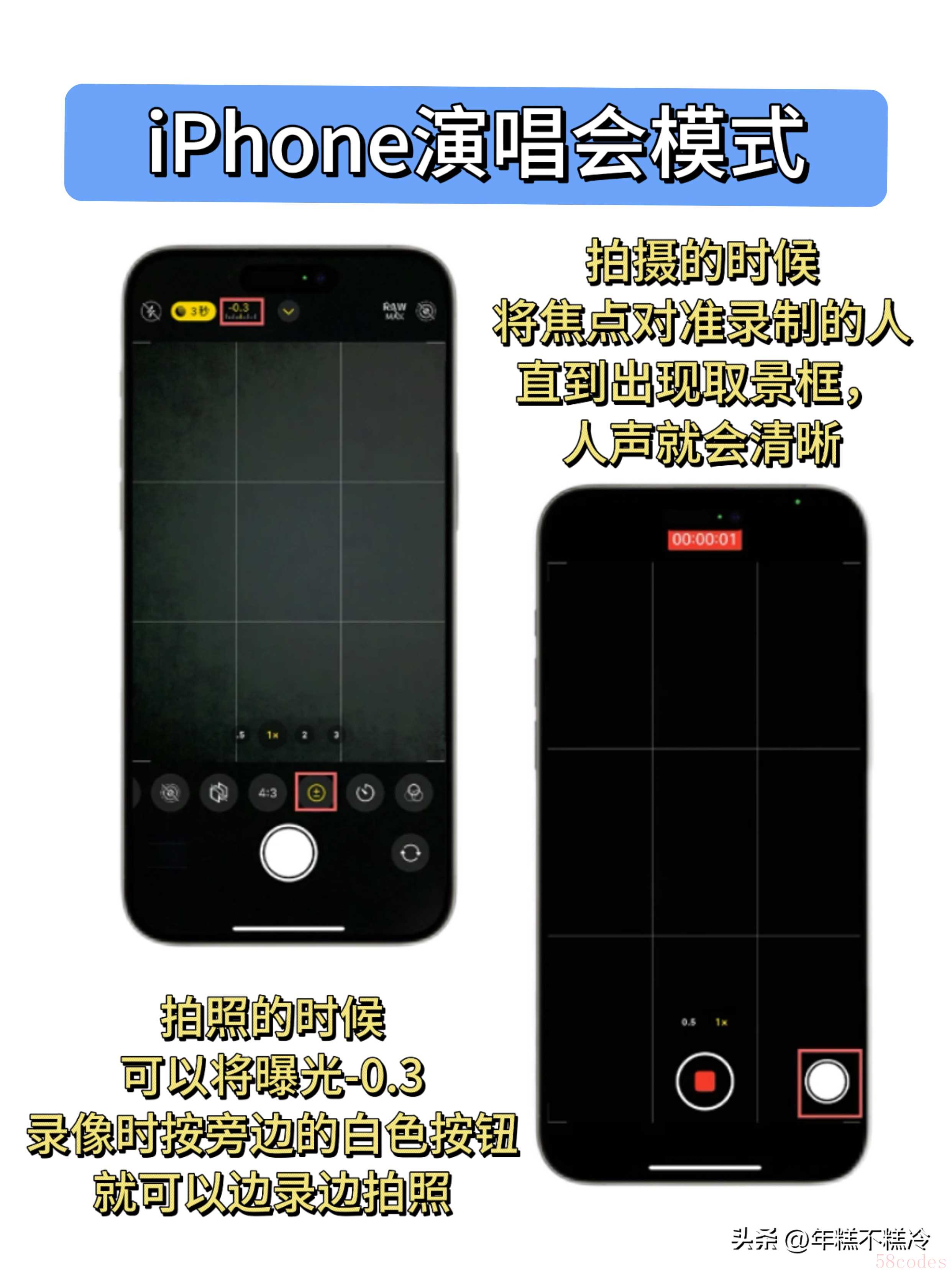 "曝光/对焦锁定 (自动对焦框右下角的太阳图标):" 点击并按住可以手动设置对焦点和曝光补偿。