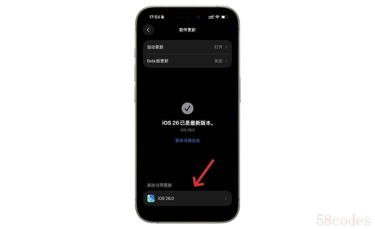 如果你此前已升级 iOS 26 Beta 测试版,现在同样可以转到正式版本。操作步骤:在软件更新界面中点击「Beta 版更新」,再选择「关闭」。