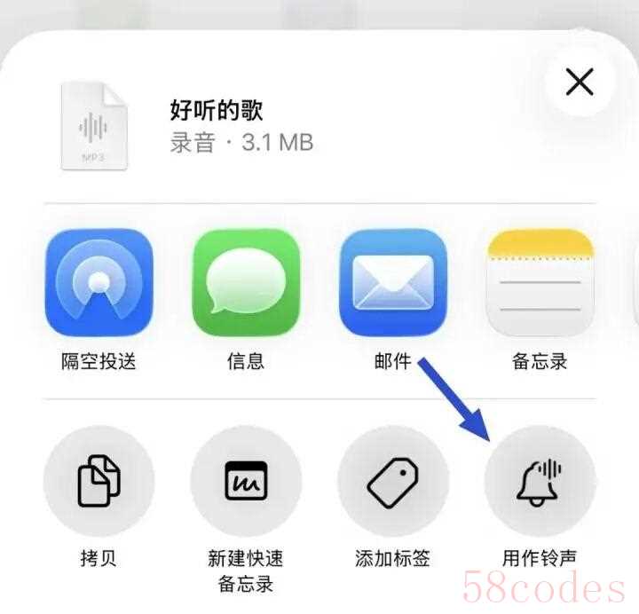 iOS26可以选择音乐文件点击共享,就能直接将该音乐「用作铃声」,按提示步骤操作就能非常轻松地自定义铃声。