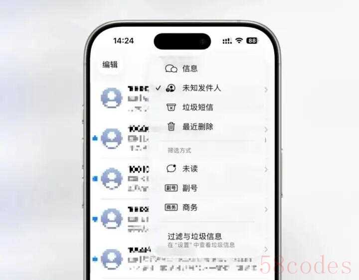 信息应用使用了新的筛选工具,可以更方便地针对信息进行管理,也能直接筛选未知发件人。