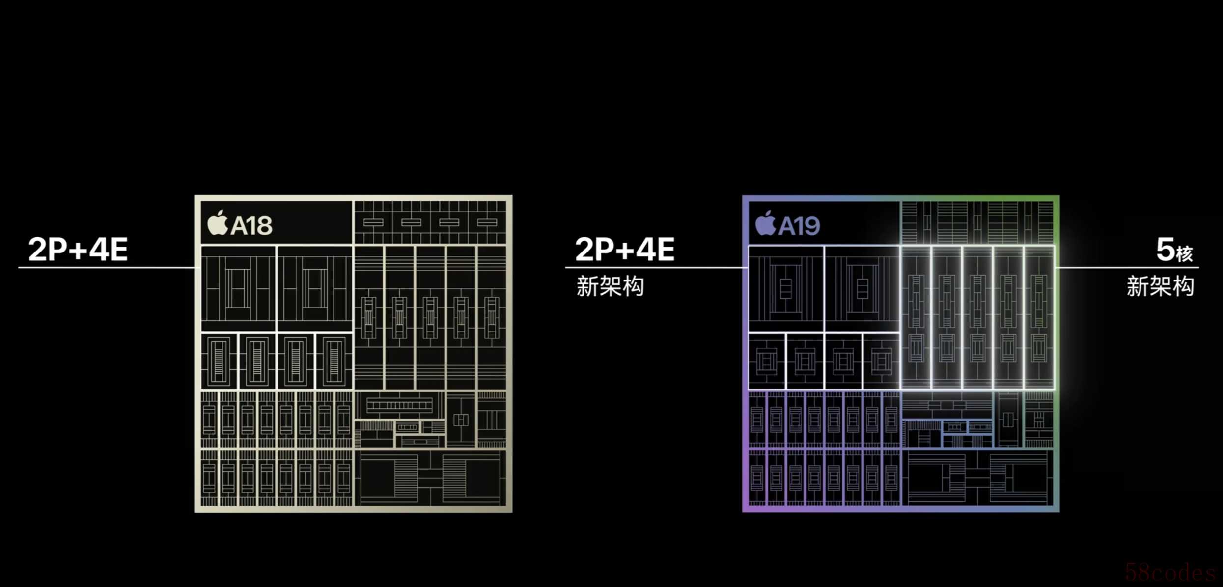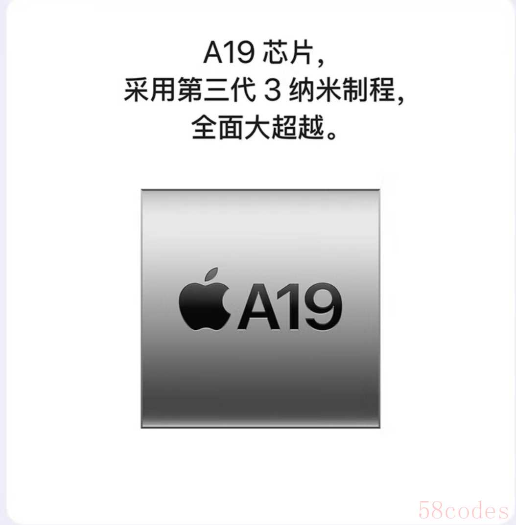 A19芯片在架构上面对比上一代也做出了更新,让A19芯片对比上一代A18芯片提升了百分之20的性能。