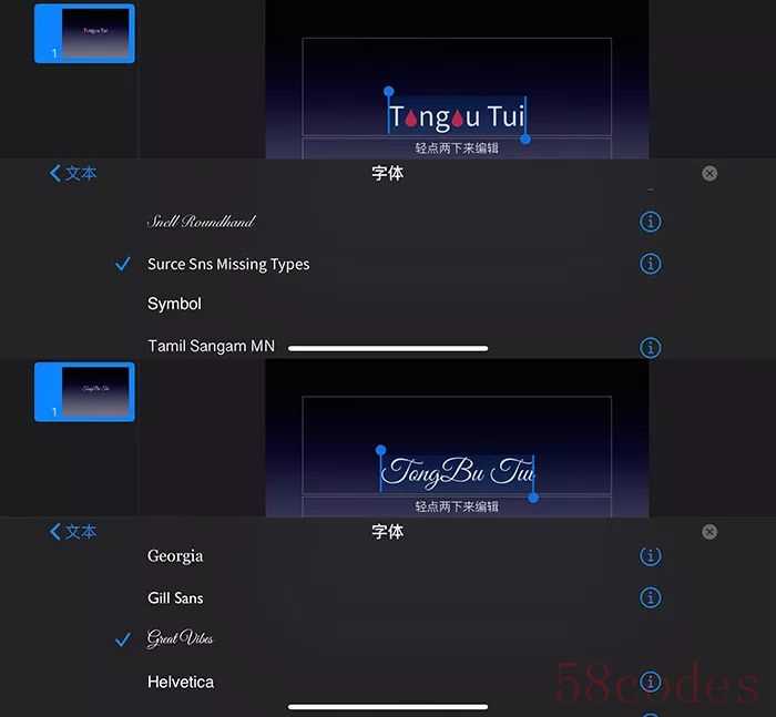 字体安装完成后,我们就能够在其它支持的软件中使用这些字体。这里用 Keynote 给大家展示一下新安装的字体的效果。