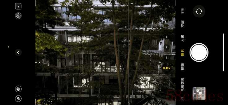 在不更改设置的情况下,单击相机按钮就会直接进入到拍摄页面,而且苹果还很贴心地做了一个从按钮跳转到拍摄页面的过渡动画,这一点还是挺符合苹果调性的。