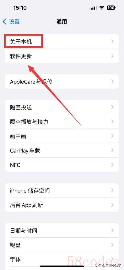3. 在“通用”菜单中,点击“关于本机”。