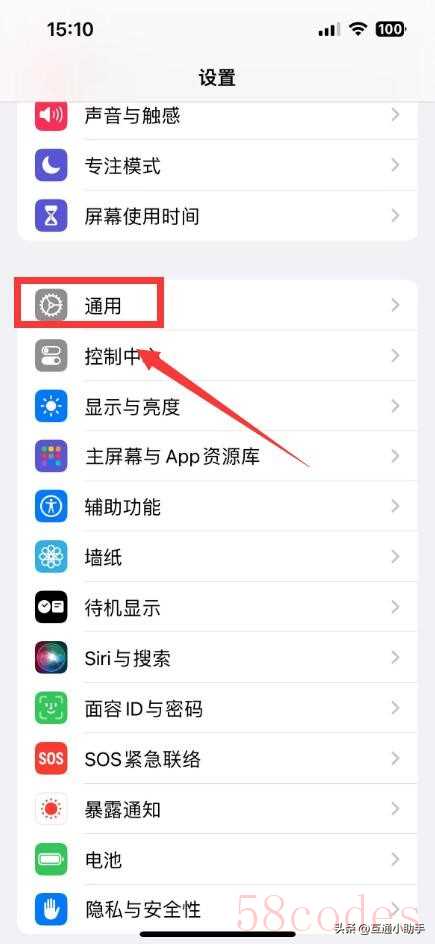 2. 向下滚动并点击“通用”。