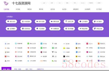 第一步:搜索“十七连资源网”或者“十七连导航网”。这是一个资源和导航网站,里面有各种各样的网站链接、软件、工具、素材和资源。