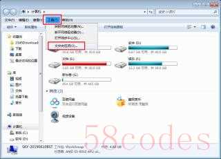 打开计算机,选择“工具”再选择“文件夹选项”。