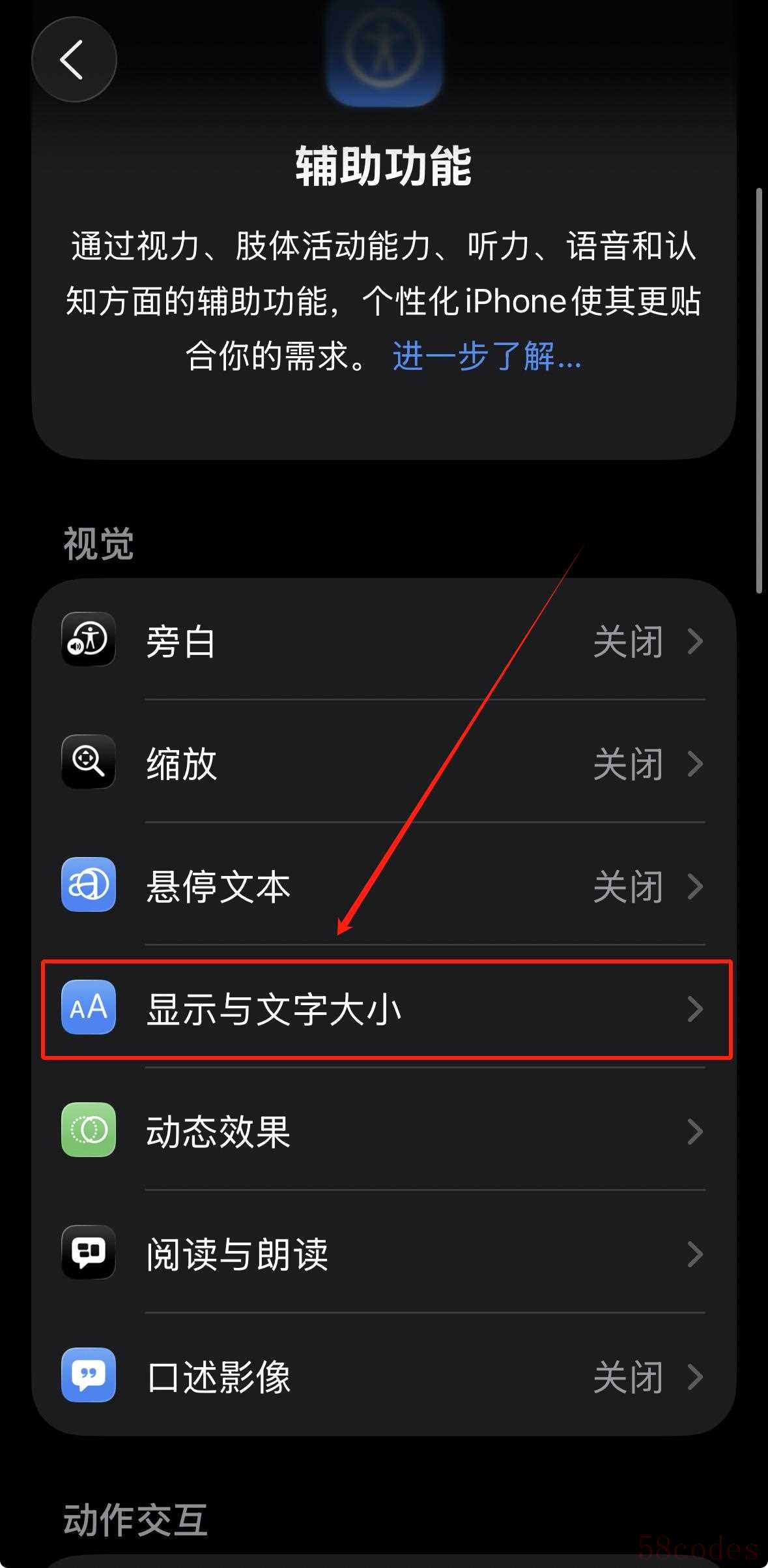 3. 在“视觉”部分下,选择“显示与亮度”。
