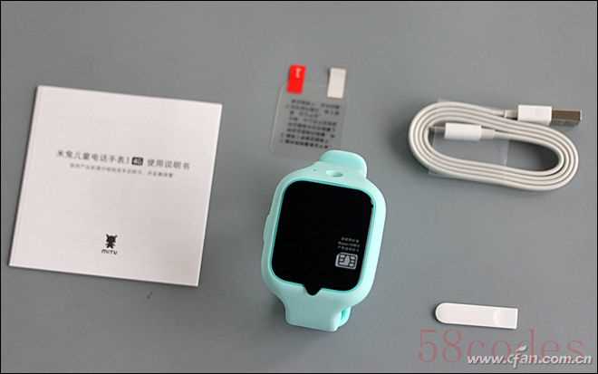 打开包装,我们就能看到米兔儿童电话手表3的全家福,包括手表、屏幕保护膜、插卡工具、充电线以及说明书(含三包卡)。