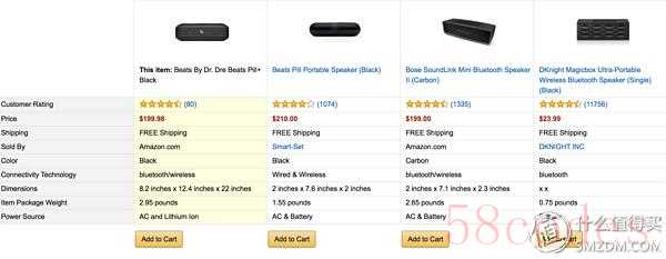 附件方面:二者都没有AUX线,Mini有充电底座,更加方便也更有逼格。而Beats Pill+只有一个聊胜于无的便携包。
