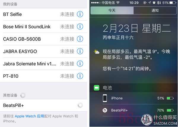 操作:Mini能同时连接2个设备,记忆8组最近使用的设备,且能一键切换设备,而Beats Pill+不借助APP的话只能待机一部;Mini连接成功会有语音提示告诉你和谁连上了,而Pill+只会“等等”的响一声;