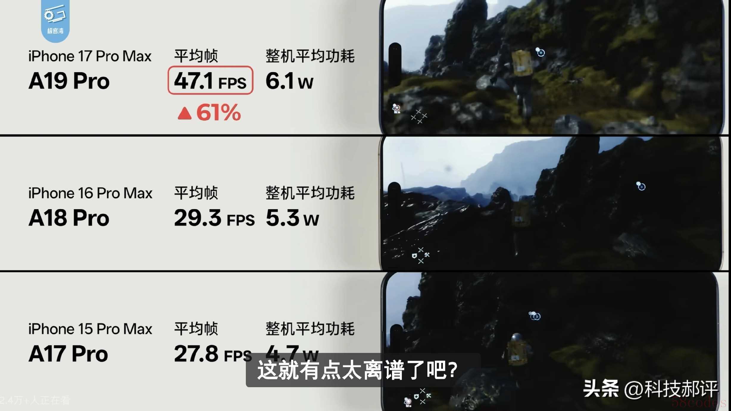 这颗基于台积电N3P工艺的芯片,最高频率达4.25GHz,极客湾实测《死亡搁浅》手游版帧率47.1FPS,比iPhone 16 Pro提升60%,功耗却降低18%。