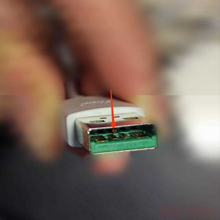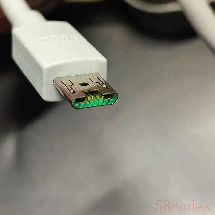 后来改为头线分离的形式,充电头和数据线使用魔改的 USB Type-A 口连接:在 A 口额外加入一个触点,数据线一端连接一颗定制的芯片,作为线材类型识别,只有通过识别的线材才能进行VOOC闪充。类似于以后我们会提到的E-Marker芯片。但是VOOC的这个识别触点并没有连到手机上,不具备通讯功能。