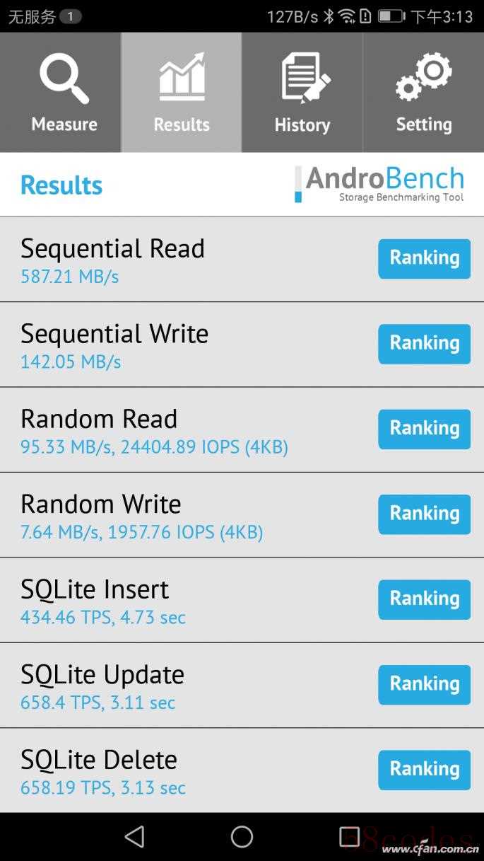 iPhone 7之所以运行流畅,除了iOS系统环境的特殊性以外,独特的PCIe+NVMe协议组合的存储单元也是功不可没。好消息是,到了2016年底,在Android领域终于出现了足以和PCIe+NVMe抗衡的存储技术,它就是UFS2.1,顺序读取速度可以接近600MB/s(图22),已经超过了PC领域的SSD!