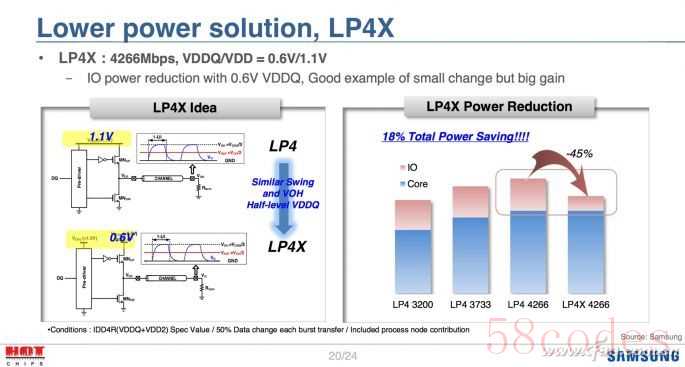 好消息是,除了麒麟960,即将上市的骁龙835、骁龙660和联发科Helio 30也都将支持UFS2.1存储技术。此外,包括上述处理器和联发科Helio P20在内的更多处理器新品,还将加入对LPDDR4X内存的支持(图23),它属于LPDDR5之前的过渡技术,理论最带宽可从LPDDR4的3733Mbps提高到4266Mbps,工作电压也从LPDDR4的1.1V降到了0.6V,在提供更出色性能的同时还更省电。