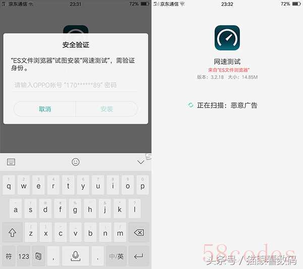 另外,如果是通过第三方途径安装应用软件,系统在安装之前会提示用户输入系统账号密码,确保是手机用户本人在安装这些应用软件。针对第三方途径安装的应用,ColorOS系统也会进行恶意广告、病毒扫描。