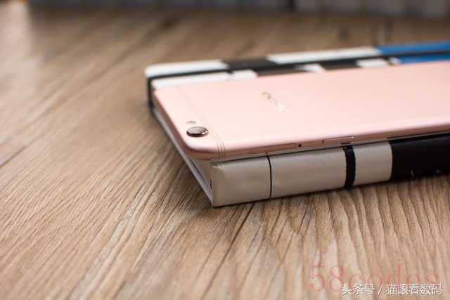 如果从特定的角度看,OPPO R9s后盖上的“微缝天线”会变得不那么明显,即使不能完全消失,也会让人看到后认为是两条装饰的纹路,这种设计反倒比直板一块的金属机身更好看一些。