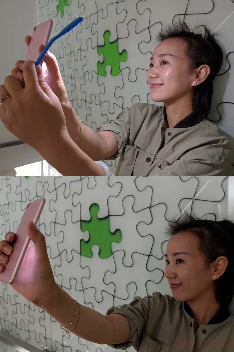 有了USB灯补光,OPPO R9可以提升暗光自拍,让脸部更白皙