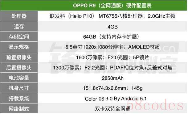 以下是OPPO R9的配置信息。