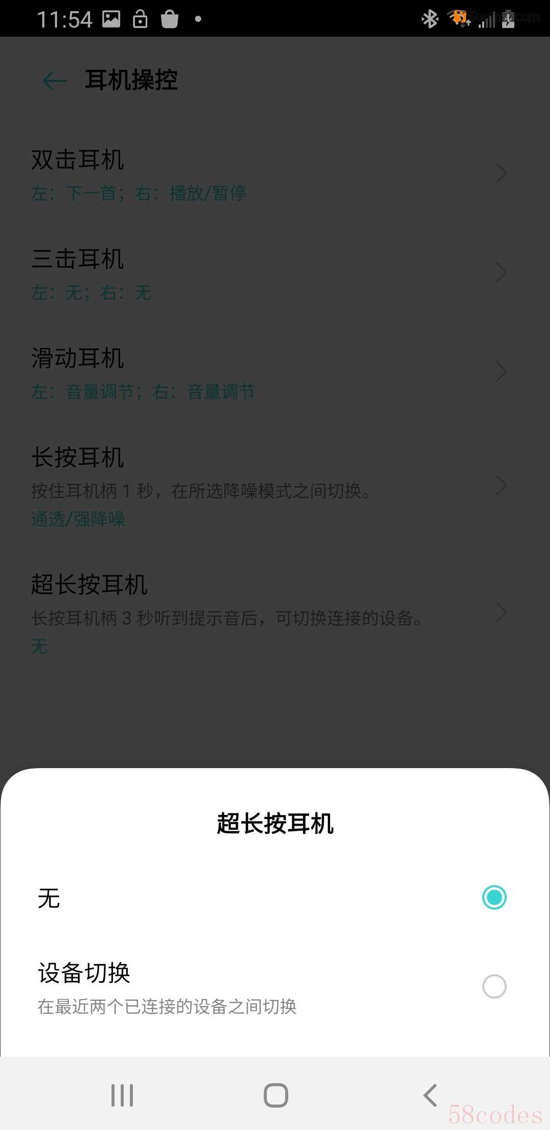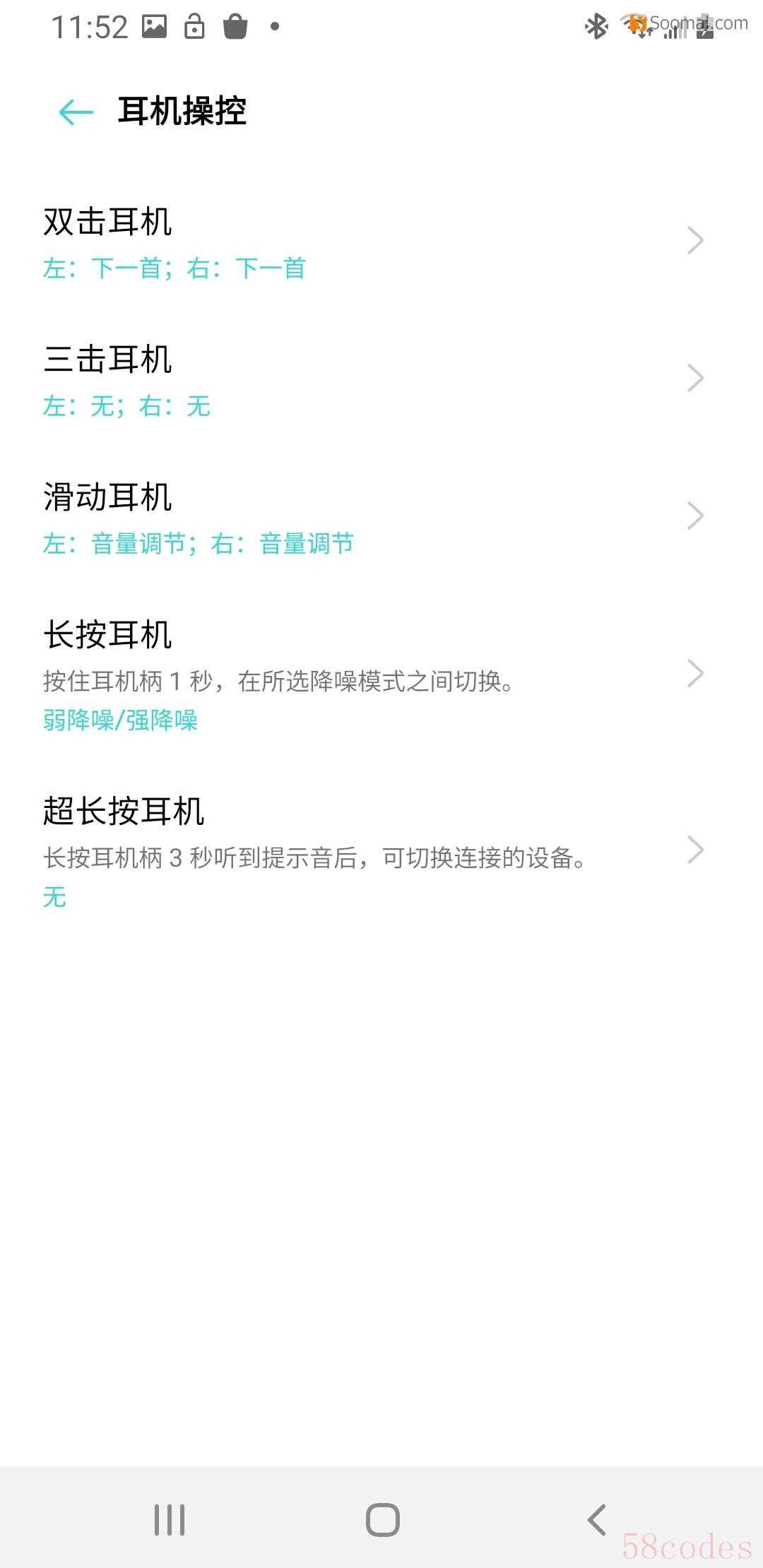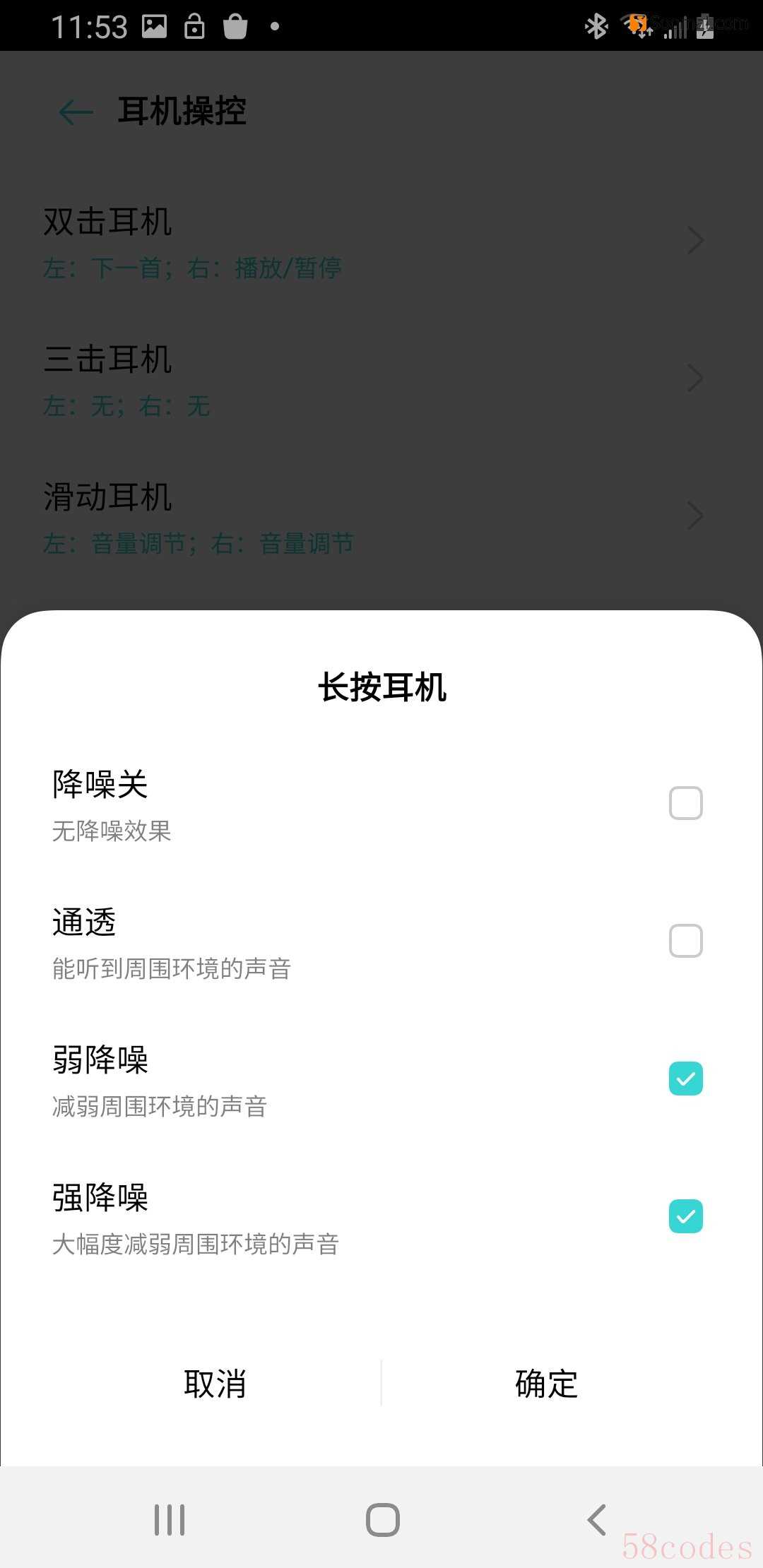 关于主动降噪相关功能设置,主动降噪设置只对应到了长按,有关闭、通透模式、弱降噪和强降噪四项,app长按操作只能对应到其中两项,就是只能选四个里的两个,长按后就会AB切换。