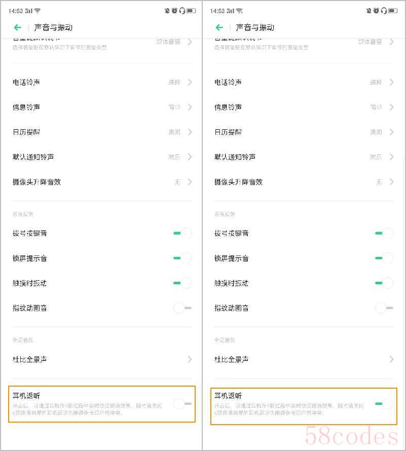 OPPO Reno2 手机上的耳机返听功能,通常指的是"麦克风监听"或"通话回音消除增强"的功能。它允许你在通话或使用语音助手时,通过耳机的小麦克风听到自己说话的声音,确保声音大小合适,或者在某些环境下改善通话清晰度。