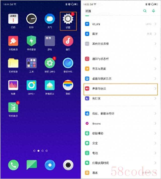 1、通过桌面【设置】—【声音与振动】进入。