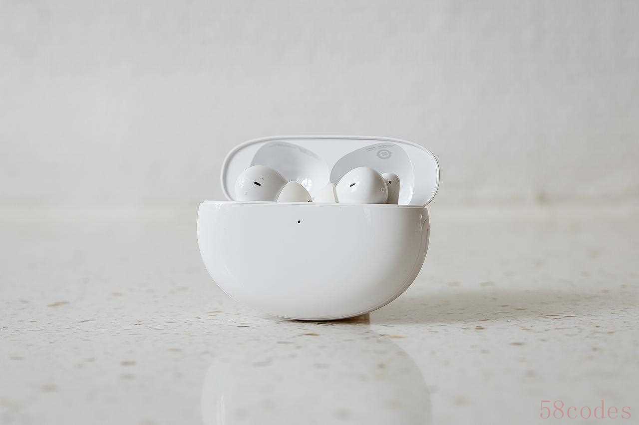开箱完毕,下面进入外观设计部分。本次我们拿到的是「星河白」配色,十分经典;同时耳机也有「极夜黑」配色,满足不同口味的用户。可以发现,本次OPPO Enco Free2的耳机盒采用了与OPPO高端产品OPPO Enco X类似的鹅卵石设计,外形圆润,手感光滑。耳机盒的顶盖边缘有一圈「渐消推面」的设计,既方便了开启,又不会破坏一体感。