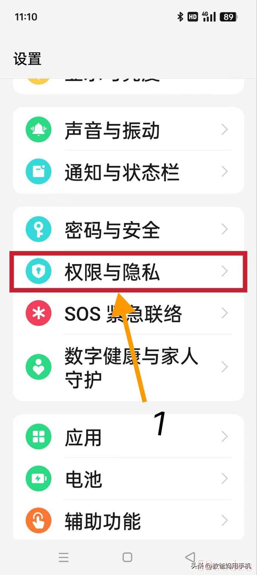 第一步:打开手机桌面设置,点【权限与隐私】(红色方框标出来啦)