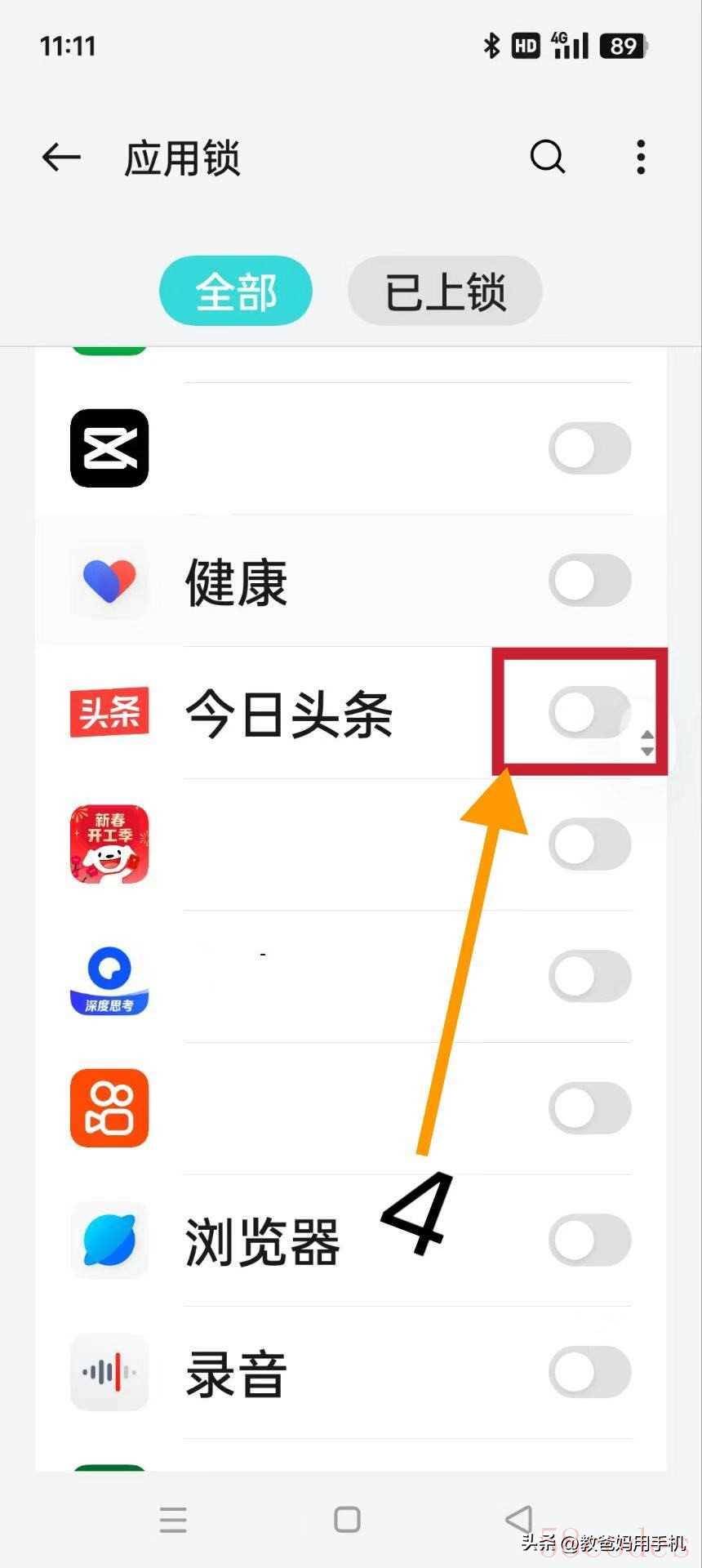 我这里给今日上应用锁,点灰色按钮(红色方框标出来啦)