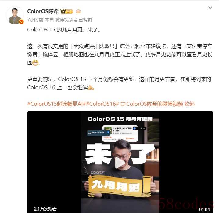 随着手机逐渐成为工作和生活的好帮手,基本成为人手一部的必需品。尽管不同的人都有自己的惯用区,但总有一些功能,成为每个人高频操作的「牢笼」。如果界面和功能设计不够合理,给用户带来的或许并非享受而是折磨。ColorOS 15搭载众多省时省力的贴心操作,尽量以简洁的方式实现用户想要的功能。即便用户能轻松的一小步,也是系统的一大进步。在ColorOS 16开始预热的前夕,没想到ColorOS 15的九月升级反而比往月要早。据陈劳斯某博爆料,下个月(十月)ColorOS 15依然还有月度更新,并且随后的ColorOS 16会接过月更的重担,誓将「OTA之神」的记录维持到底。期待ColorOS 16能早日官宣,给我们演示更多省时省力的贴心操作。