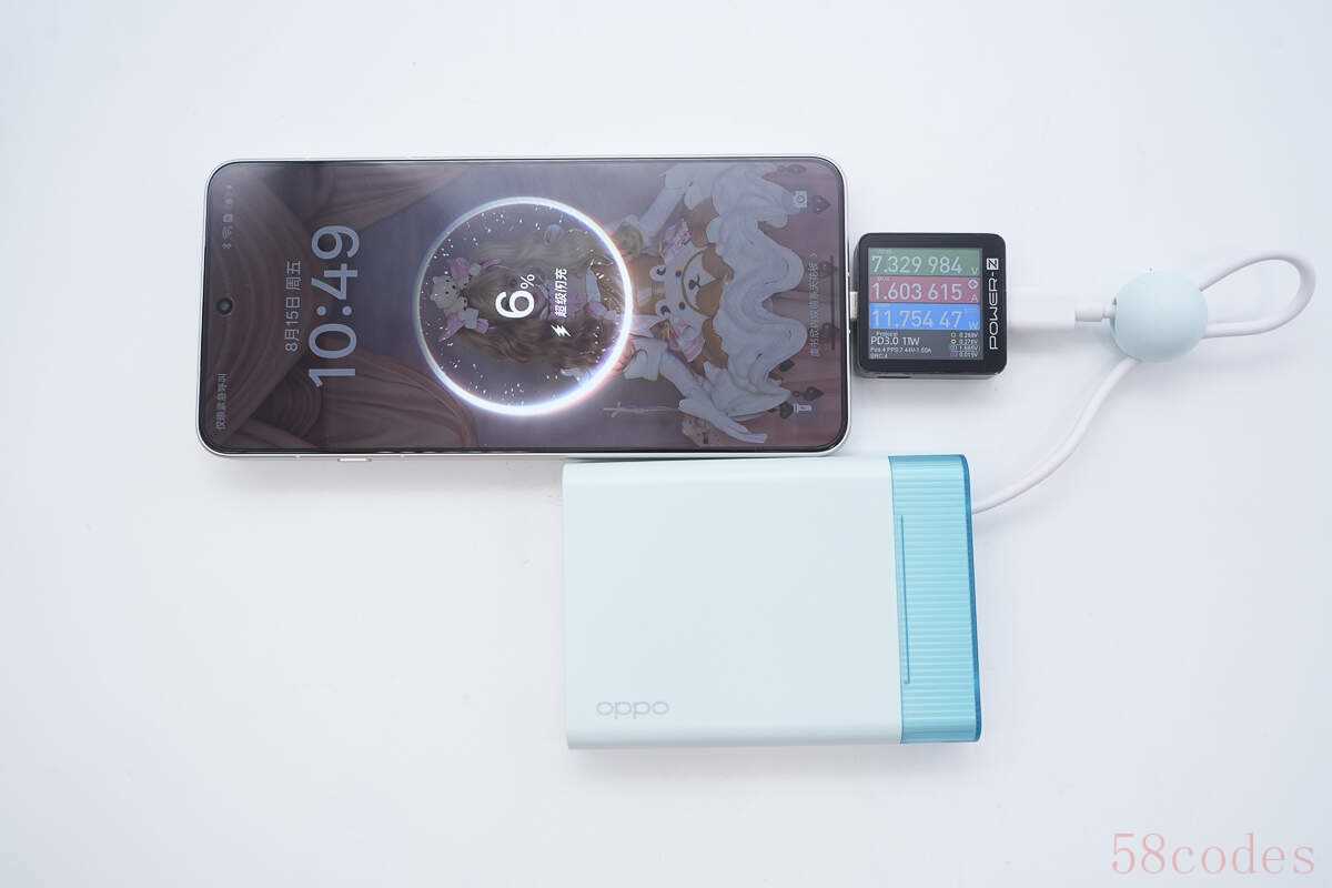 使用移动电源USB-C自带线给OPPO Find X8 Ultra充电,成功开启OPPO超级闪充。